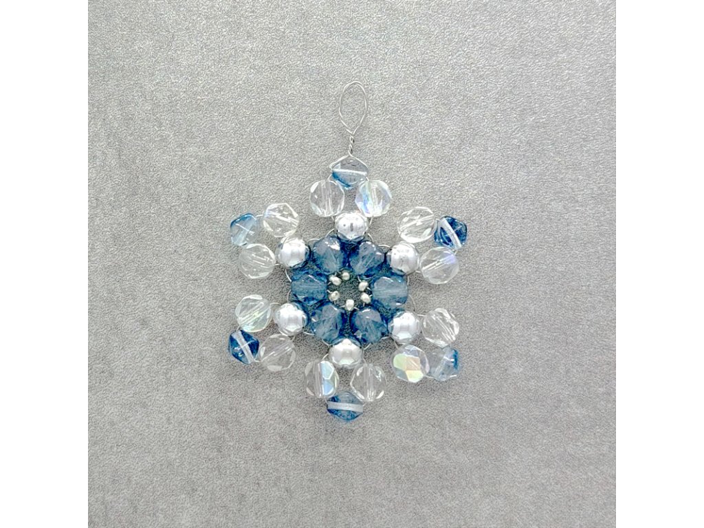 Ručně vyráběná ozdoba ze skleněných korálků, doplněných akrylovými perlami.