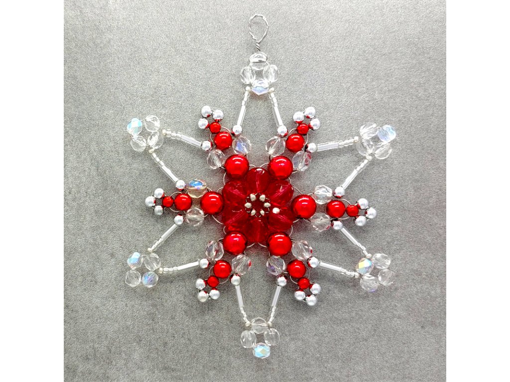 Ručně vyráběná ozdoba ze skleněných korálků doplněných akrylovými perlami